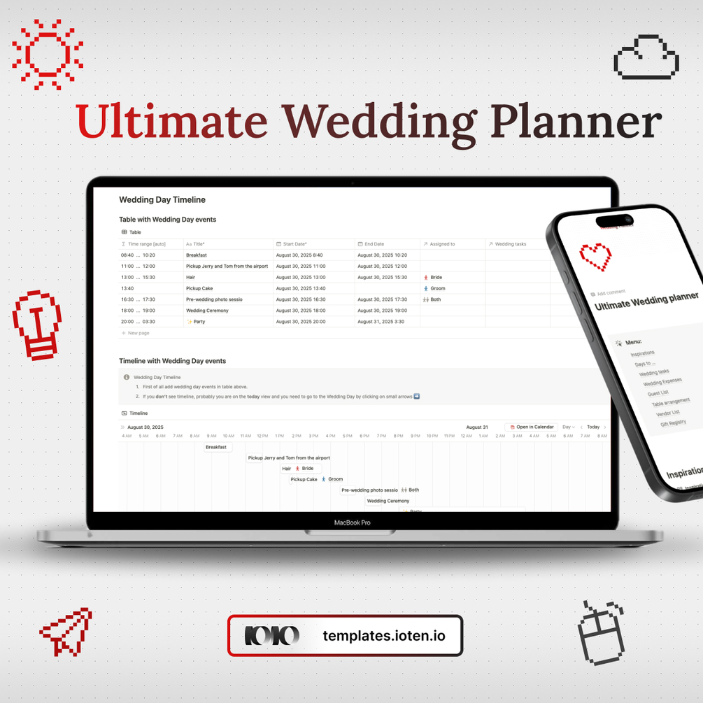 Whether you’re organizing an intimate ceremony or a grand celebration, the Ultimate Wedding Planner is your go-to tool for a stress-free planning experience.